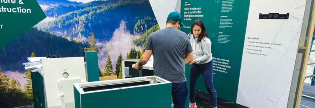 Au fil des ans, nous avons acquis une grande expertise du monde des salons et des expositions au Canada et aux États-Unis. Cette expertise nous permet d’affirmer que ce n’est pas toujours aussi simple que l’on pourrais le penser une fois sur place. C’est pourquoi nous offrons un service d’installation et de démontage de vos kiosques d’expositions. Aussi, après une longue durée à exposer et à vendre votre entreprise, vos employés n’auront certainement pas envie de s’avérer à démonter le kiosque d’exposition, de le ranger et de le transporter.
